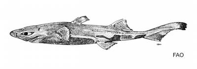 Body strongly marked with light and dark areas, streaks and spots; very small (probably the smallest shark) with a somewhat flattened head and snout (its depth 2/3 or less than its width); moderately large eyes; slender, needle-shaped denticles in random, dense array; fins moderately large.