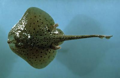 Usually on sandy or gravelly bottoms from shoal waters to 90 m depth (Ref. 7251), with temperature range of 1.2-21?C. Benthic (Ref. 5951). Mostly inactive during daylight, but active under dark conditions (Ref. 10807). Oviparous. Distinct pairing with embrace. Young may tend to follow large objects, such as their mother (Ref. 205). Eggs are oblong capsules with stiff pointed horns at the corners deposited in sandy or muddy flats (Ref. 205). Egg capsules are 4.6-6.3 cm long and 2.7-4.8 cm wide, about 10-35 eggs are laid annually (Ref. 41250). Possesses an electric organ located in the tail region (Ref. 10807). Electric organ discharge (EOD) activity is intermittent (Ref. 10011) and seemed more frequent during dark periods (Ref. 10808). The individual EOD of this species is monophasic, head-negative, and lasts 70 ms (Ref. 10011).
